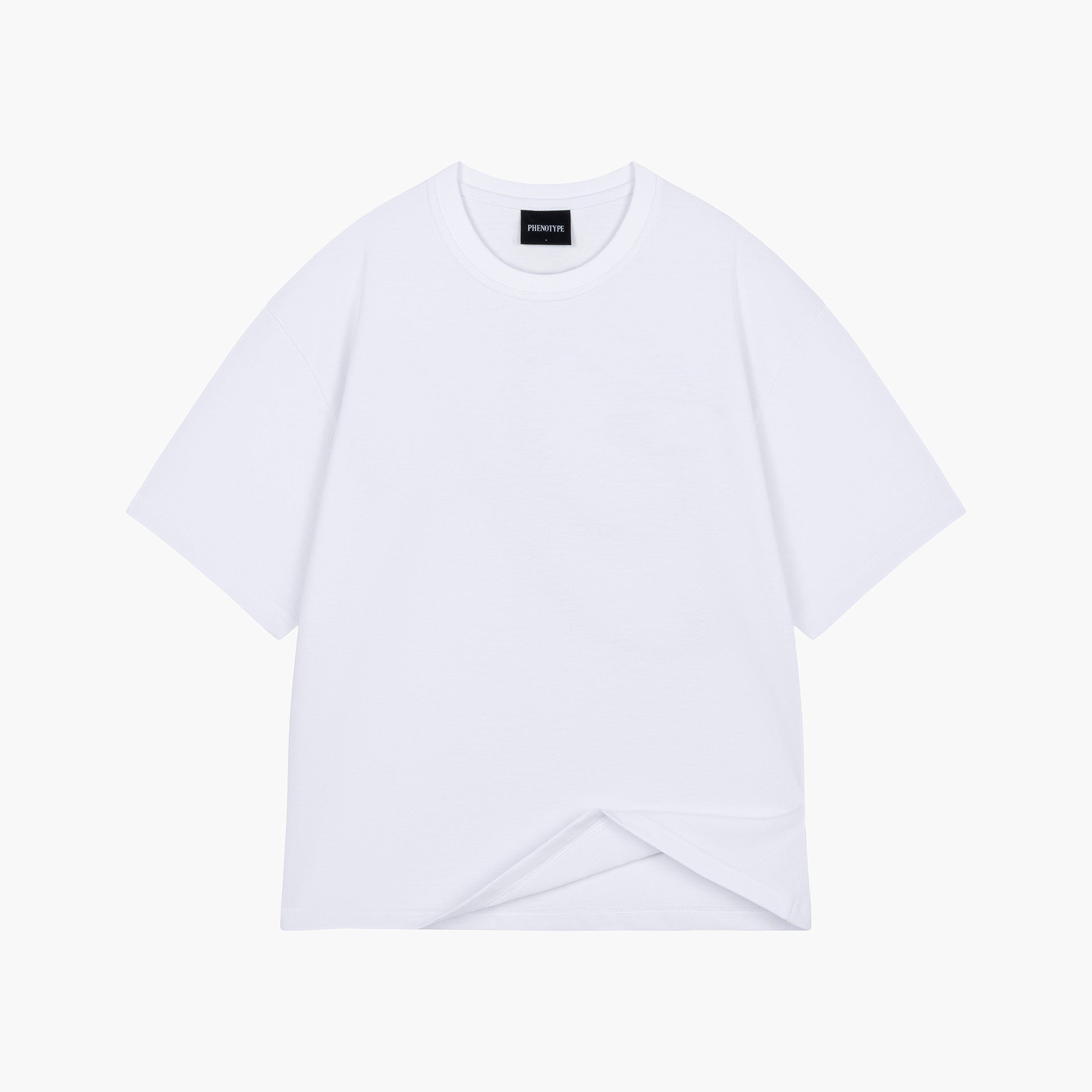 Koszulka Blank w kroju Boxy z metką żakardową Phenotype oraz przepisem prania. Idealny pod codzienne stylizacje w lekkiej gramaturze 180g. 100% bawełniany single jersey